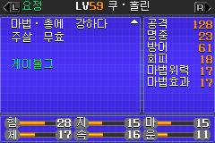 동료마 상태화면 내성 확인 부분 한글화 완료