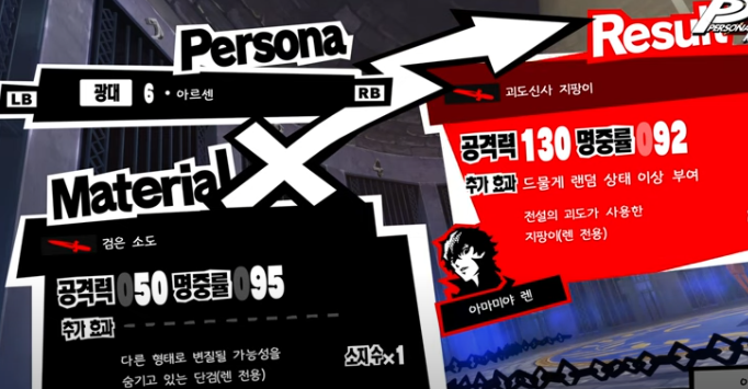 - 페르소나를 재료 아이템과 합체해 다른 아이템으로 변환하거나 블랭크카드와 합체해 스킬카드 합성 가능
