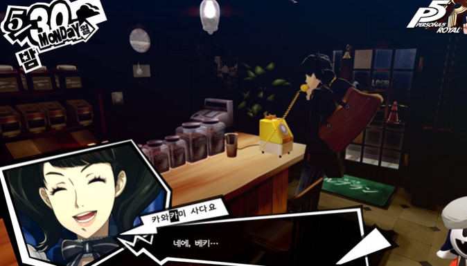 - 이후 배짱 3 이상일 때 밤에 르블랑 전화로 카와카미를 호출하면 코옵 시작