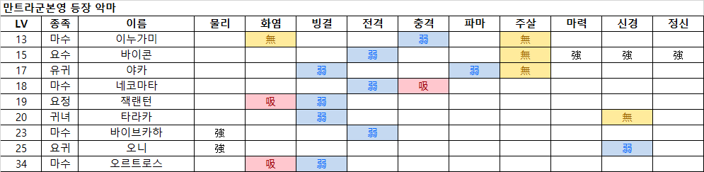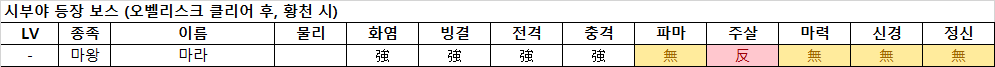 - 마라는 디아라한으로 완전 회복하므로, 마라의 HP 2,300을 1턴에 줄 수 있도록 아군을 성장시키고 공격 수단을 준비해야 한다. 속성 공격의 방어력이 높으므로, 물리 스킬에 기합으로 위력을 올려 대응하는 것을 추천.