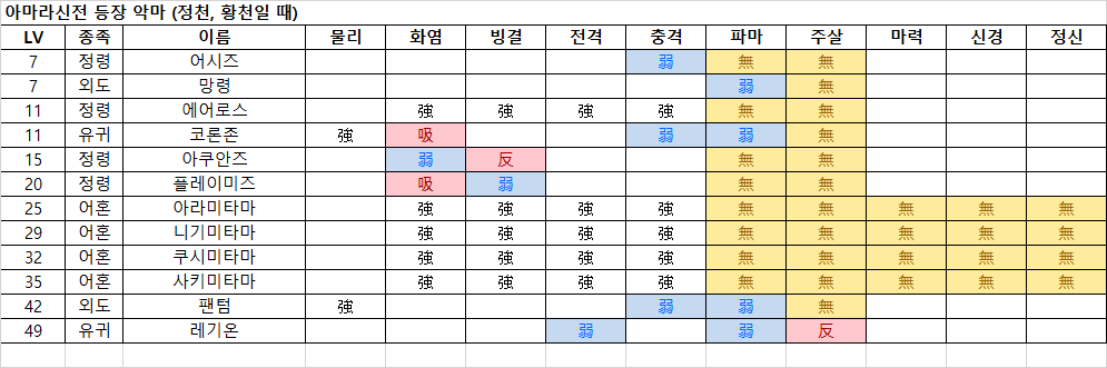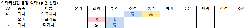 - 물리 흡수이므로 마법 공격과 마카카쟈를 준비하는 것을 추천.