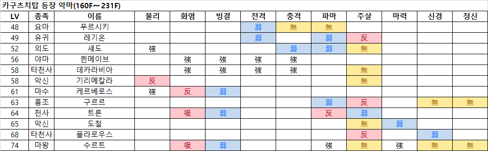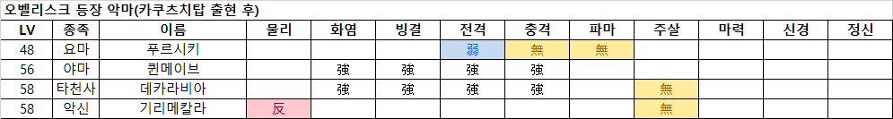 - 매니악스 모드라면, 오벨리스크를 지나 카구츠치탑에 가는 순간, 루트가 완전히 고정되니 주의. 매니악스 아마라심계 다크카오스 루트를 가고자 한다면, 카구츠치탑으로 가지 않고 아마라심계 제5칼파 최하층 이벤트를 클리어해야 함