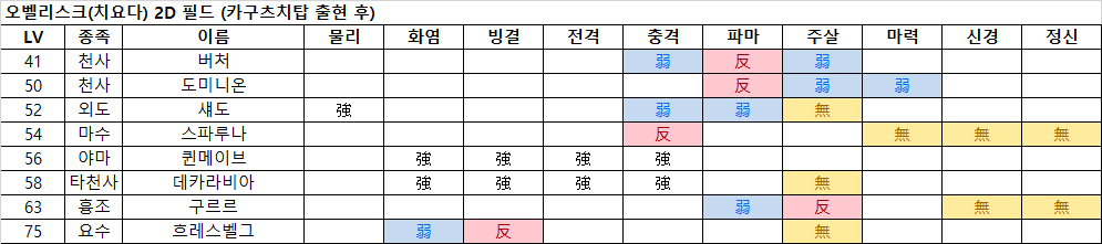- 매니악스 모드라면, 오벨리스크를 지나 카구츠치탑에 가는 순간, 루트가 완전히 고정되니 주의. 매니악스 아마라심계 다크카오스 루트를 가고자 한다면, 카구츠치탑으로 가지 않고 아마라심계 제5칼파 최하층 이벤트를 클리어해야 함