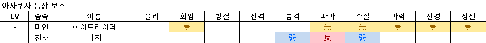 | ▷BOSS 마인 화이트라이더(魔人 ホワイトライダ-) LV 52 HP 4000 MP 1500 사용기술 : 사천소환, 갓애로, 프로미넌스, 데카쟈, 용의 안광 |