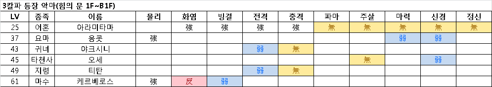 | 1F 북쪽 (운 구역) | 요귀 온교우키, 마왕 마라, 야마 사악프로스트 |