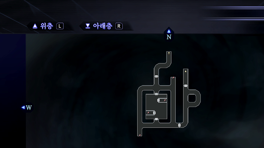 ▶B3F에서는 북쪽, 북동쪽, 남서쪽 세 군데의 스위치를 눌러야 문이 열리는 구조이며, 스위치를 누르는 순간 단테가 등장한다. 만약 단테에게 잡히면 눌러 놓은 스위치가 모두 원래대로 돌아가므로 상당히 귀찮아진다. 북쪽은 가까이 가야 벽이 보이는 형태의 미로이며, 다른 두 곳은 田자 형태의 구조로 되어 있다. 모두 막힌 곳이 있기 때문에 허둥대다가 단테에게 잡힐 수 있는데, 북쪽의 지역은 스위치를 누르고 난 후 앞으로 1마스, 오른쪽으로 2마스, 왼쪽으로 1마스 이동한 곳에서 대기하고 있다가 단테가 가까이 오면 따돌리는 형식으로 빠져나갈 수 있으며, 나머지 두 곳은 스위치를 누른 곳에서 나와 바로 왼쪽에 보이는 기둥에 대기하고 있다가 단테를 따돌릴 수 있다. 조금만 해 보면 구조를 알 수 있으니 잡히더라도 계속 시도해 보기를. 참고로 3번째 스위치를 누르면 단테가 등장하지 않고 출구 앞에서 대기하니, 어려운 북쪽 지역을 3번째로 하고, 비교적 쉬운 북동쪽과 남서쪽을 먼저 하는 것을 권한다. 출구 바로 앞에서 대기하는 단테를 따돌리고 B4F로 가자.
