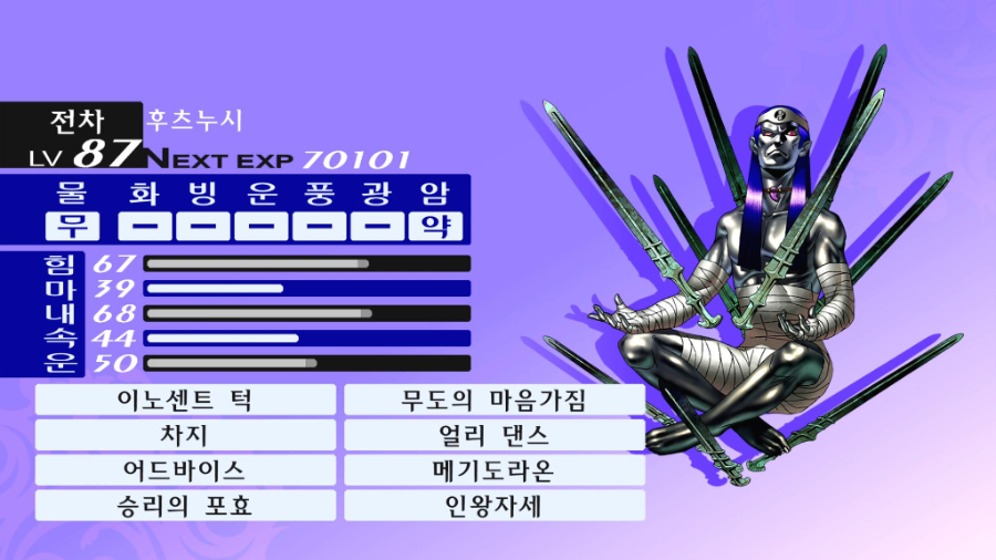 내성 : 물리 무효, 화염 흡수, 전격 반사, 빛 반사