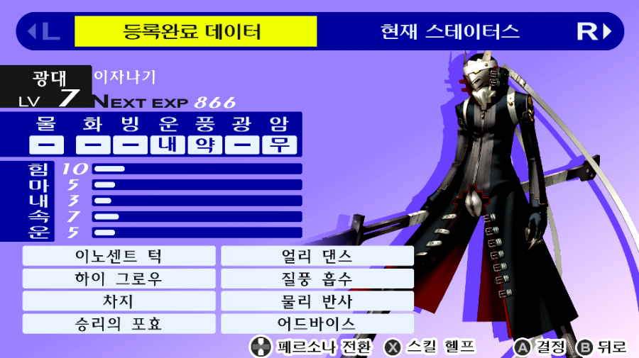 페르소나4 더 골든 - 이자나기 강화 육성 조합 스킬 세팅 예제