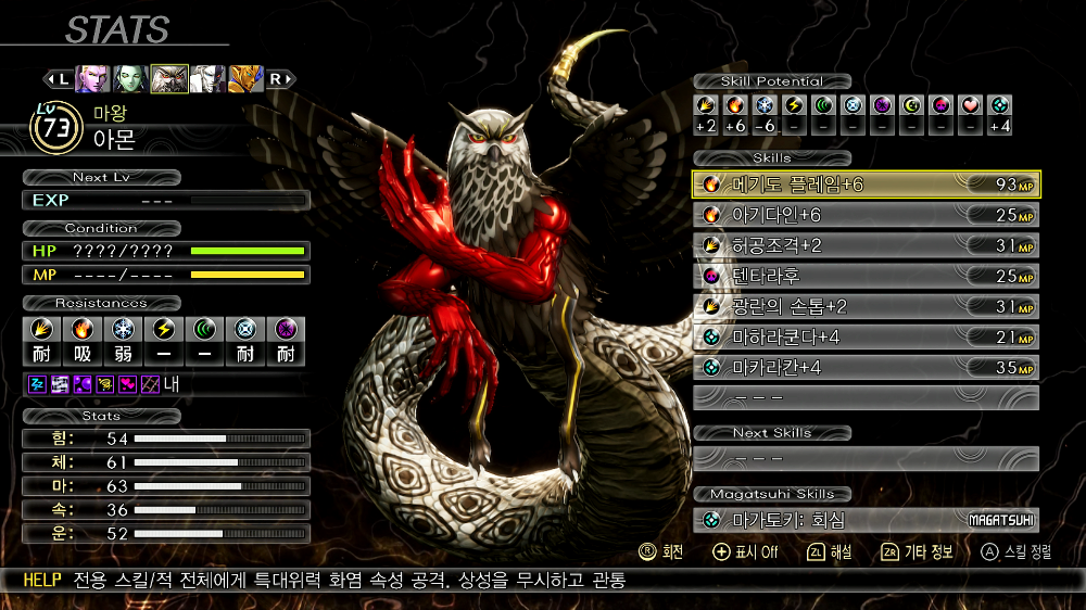 - 아몬은 능력치가 상당히 높으며, 전용기 메기도 플레임은 화염 내성을 무시하고 관통하는 스킬이므로 주의해야 한다. 버프 디버프 보조마법을 준비하도록 하자.