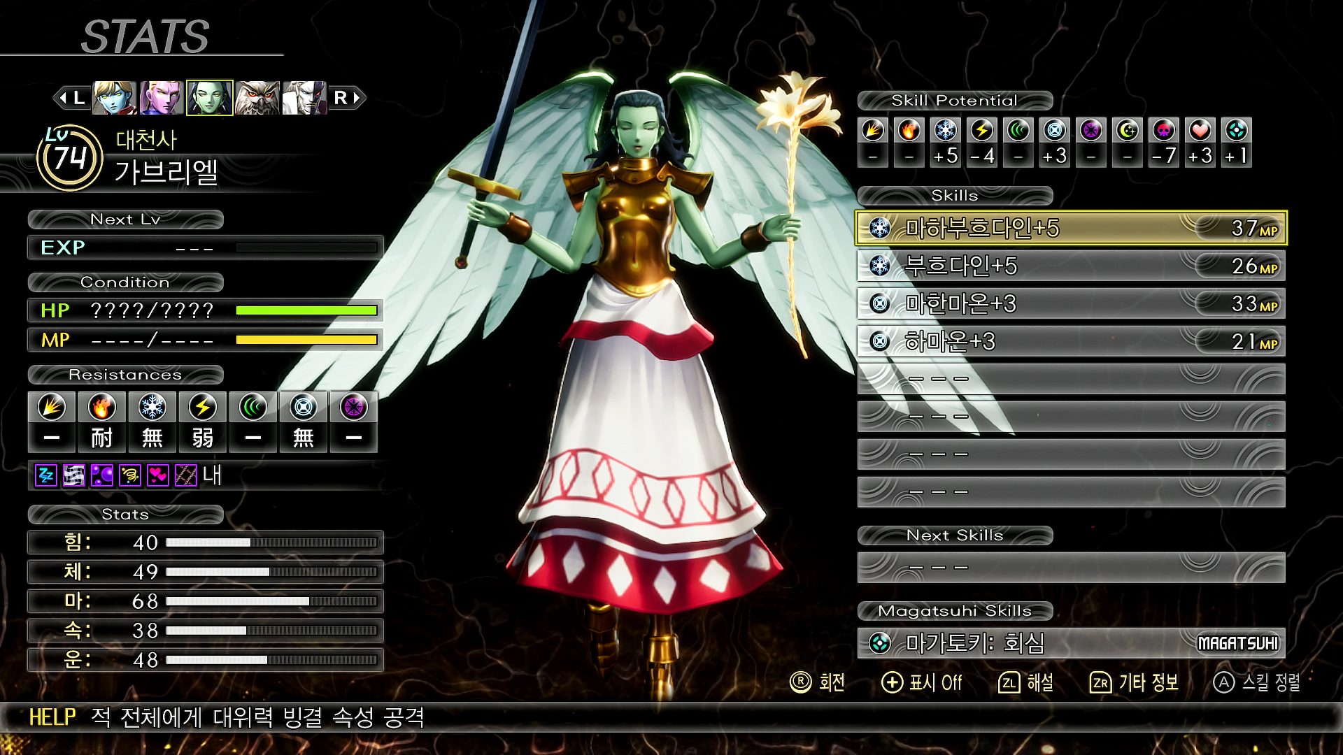 - 마가츠히를 모은 턴에는 가브리엘은 파마, 라파엘은 충격, 우리엘은 전격을 사용한다.
