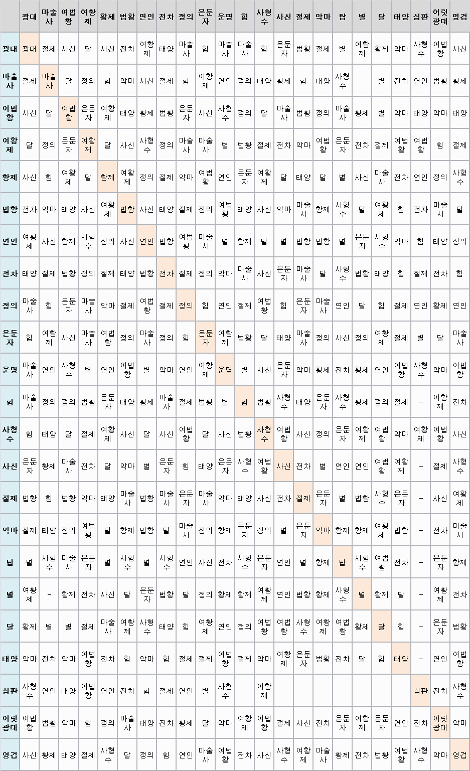 | 76 | 법황 황룡 | 절제 백호 + 절제 주작 + 절제 청룡 + 절제 현무 |