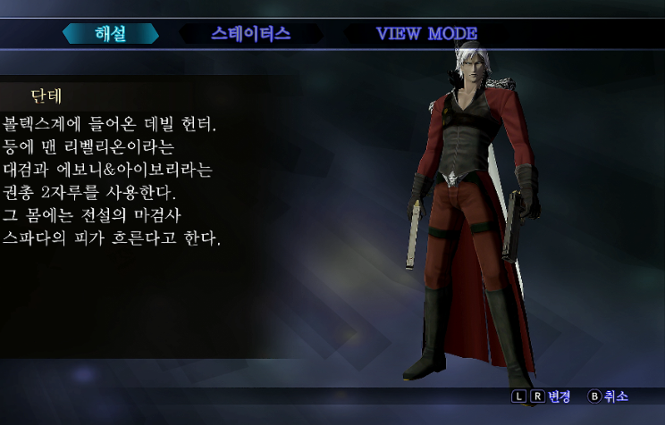등에 맨 리벨리온이라는 대검과 에보니&아이보리라는 권총 2자루를 사용한다.