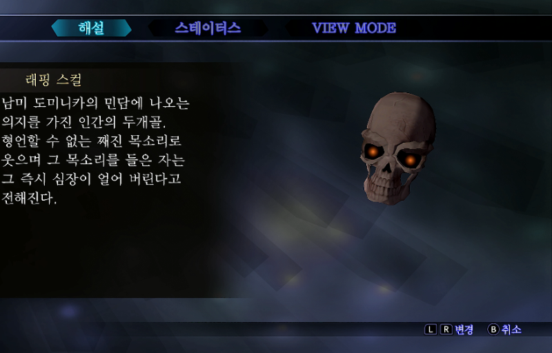 남미 도미니카의 민담에 나오는 의지를 가진 인간의 두개골.