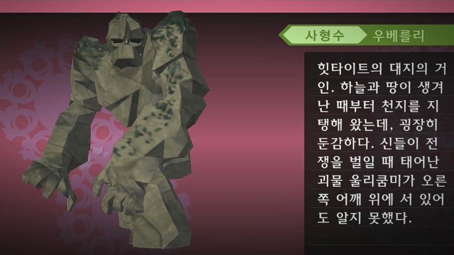 복수를 위해 바위산과 정을 통해 거대한 바위괴물 울리쿰미를 만들었다고 한다.