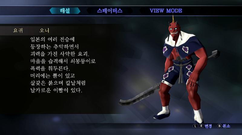 머리에는 뿔이 있고 살갗은 붉으며 긴 손톱과 칼날처럼 날카로운 이빨이 있다.