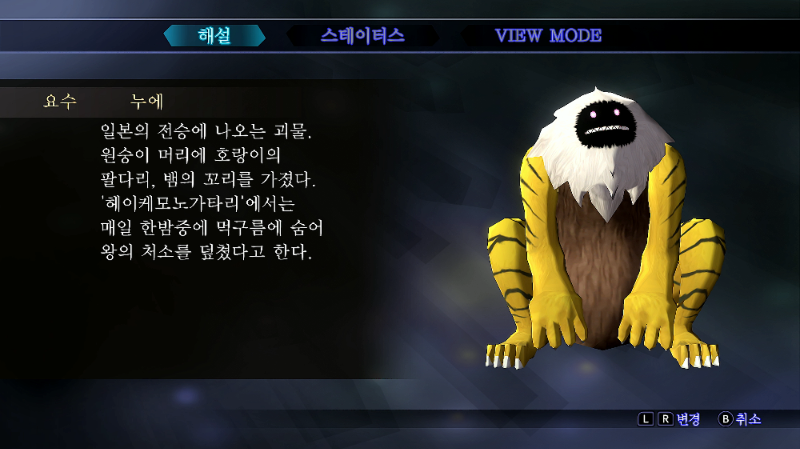 일본에 전해지는 여러 짐승들이 합해진 모습의 요수.