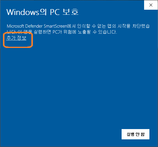 Windows의 PC 보호 메시지가 뜬다면, '추가 정보' 를 클릭하시기 바랍니다.
