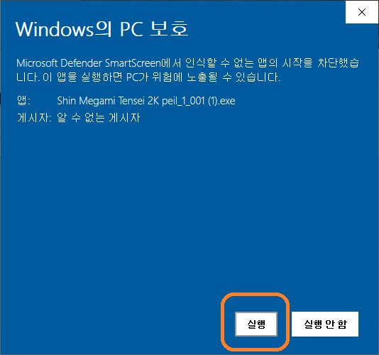 4. 윈도우즈 보안 상태에 따라 Windows 의 PC 보호가 동작할 수 있습니다.