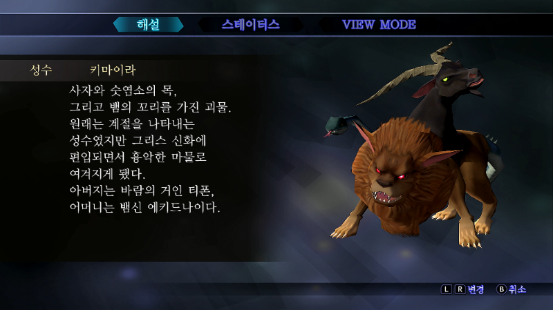 사자, 염소, 뱀 혹은 용이 합쳐진 듯한 모습의 괴물.