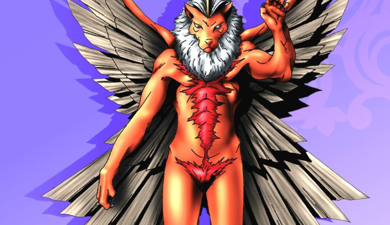 사자의 얼굴, 인간의 몸, 등에는 새의 날개가 있으며,
