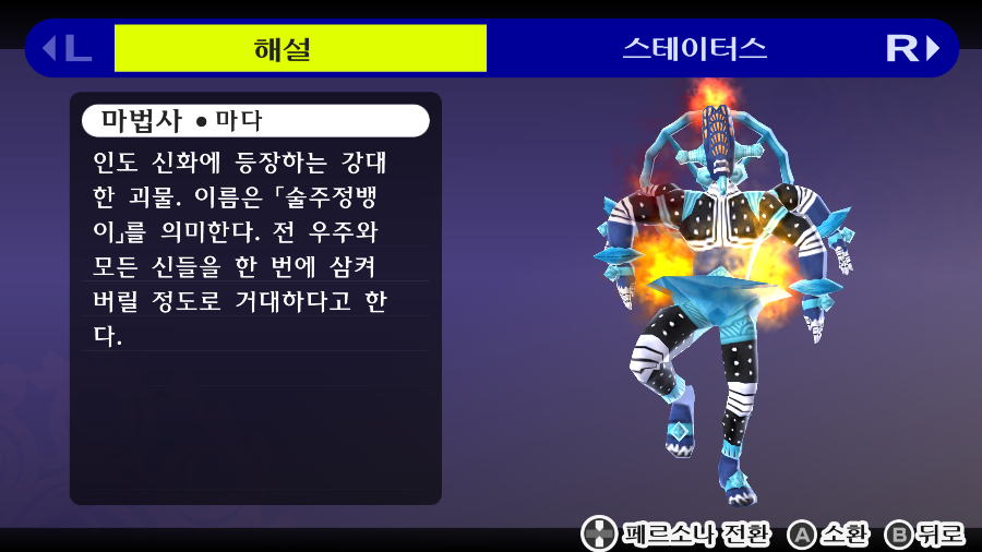 진 여신전생 페르소나 시리즈 - 신화 전설 정리 - 국가 지역 종교 별 구분링크크리스트교 / 유대교LINK이슬람교 / 아라비아LINK불교 / 인도LINK조로아스터교 / 페르시아LINK메소포타미아 / 수메