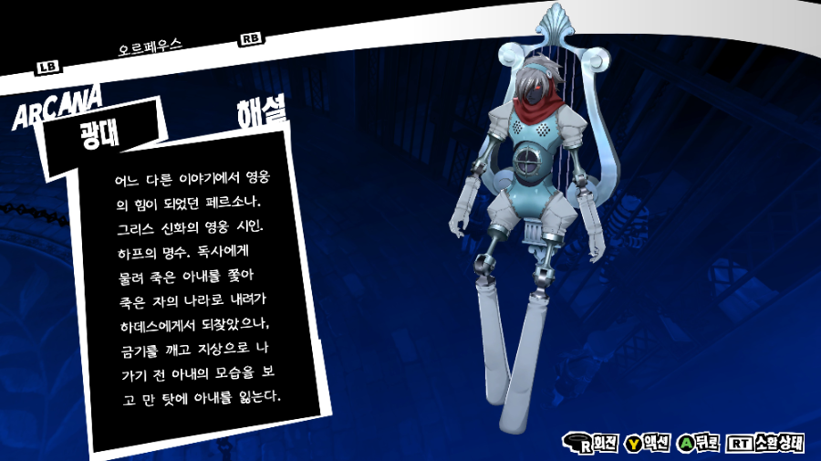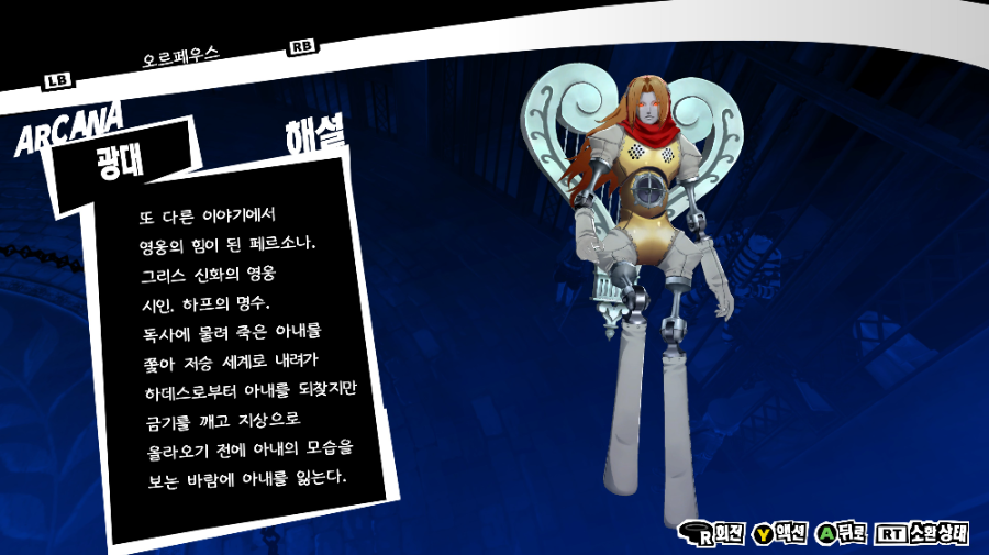 아내 에우리디케가 죽자 명부로 가 하데스와 켈베로스를 비롯한 명부 전체를 감동시키는 음악을 연주했다.