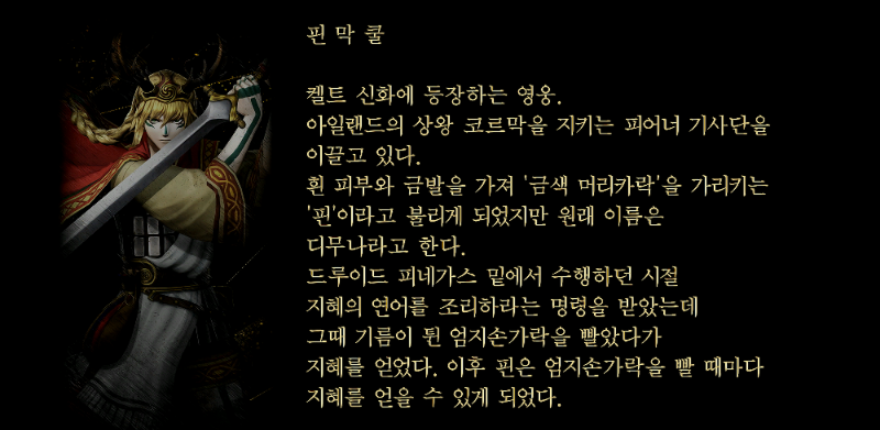 드루이드 피네가스 밑에서 수행하던 시절 지혜의 연어를 조리하라는 명령을 받았는데,