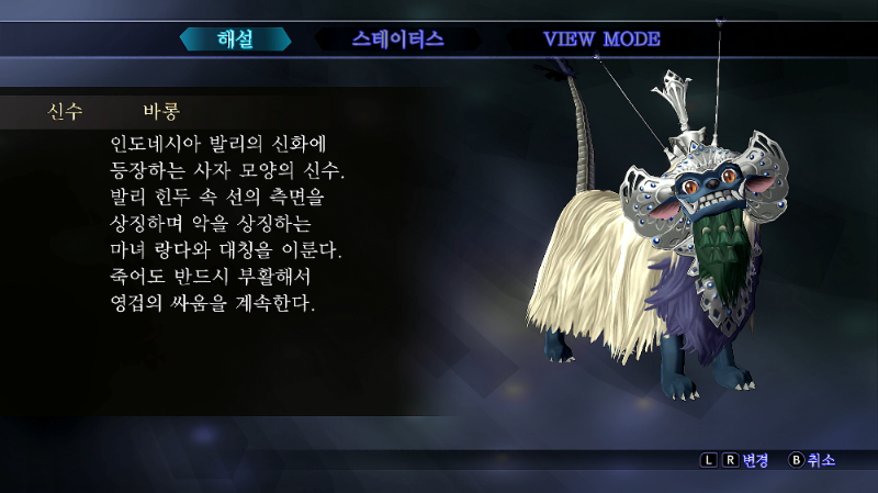 바롱이 나타나 백마술로 대항한다고 전해진다.